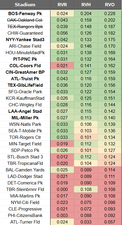 Ballpark Fit: BOS, NYY, CHW, ARI, HOU, PIT, COL, CIN, ATL, TEX, KCR