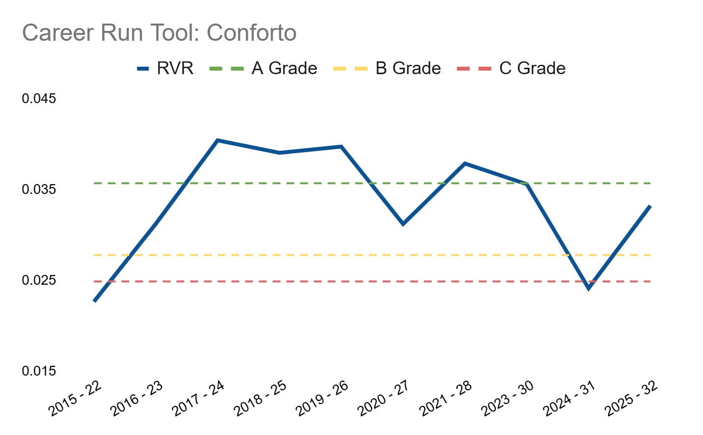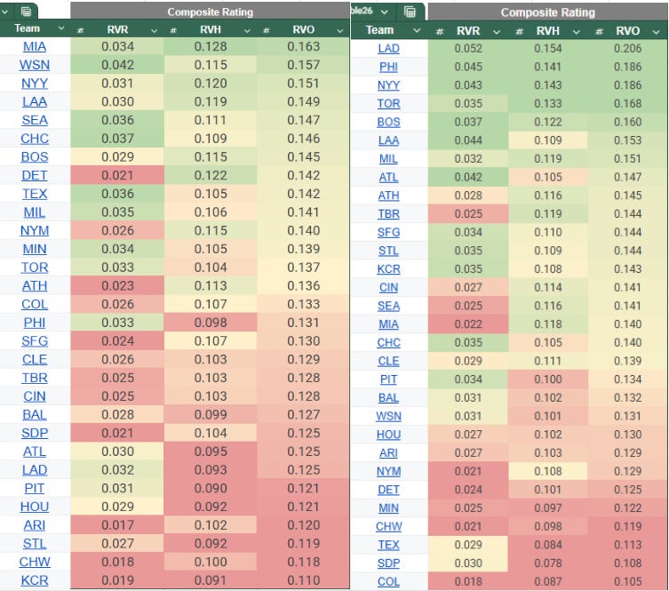 RVO (Run Value Overall) “Overall” — The sum of Run Tool + Hit Tool, representing overall offensive contribution per plate appearance